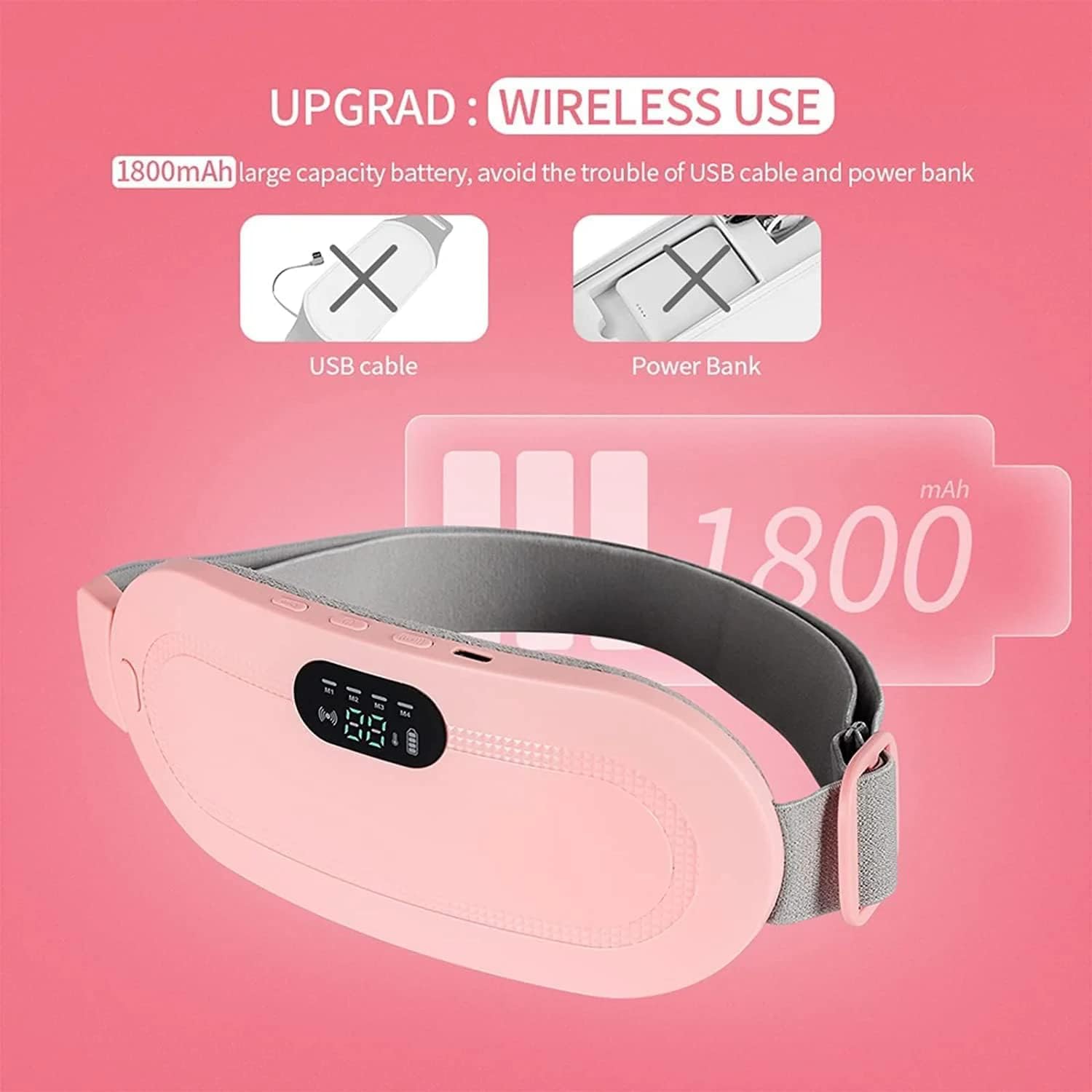 Period Heating Pad, DMG Cordless Electric Heating Belt, Rapid Heating Pad with 3 Heating Levels and 4 Vibrating Massage Modes, Period/Period, Back or Belly Pain Relief for Women or Girls (Pink)